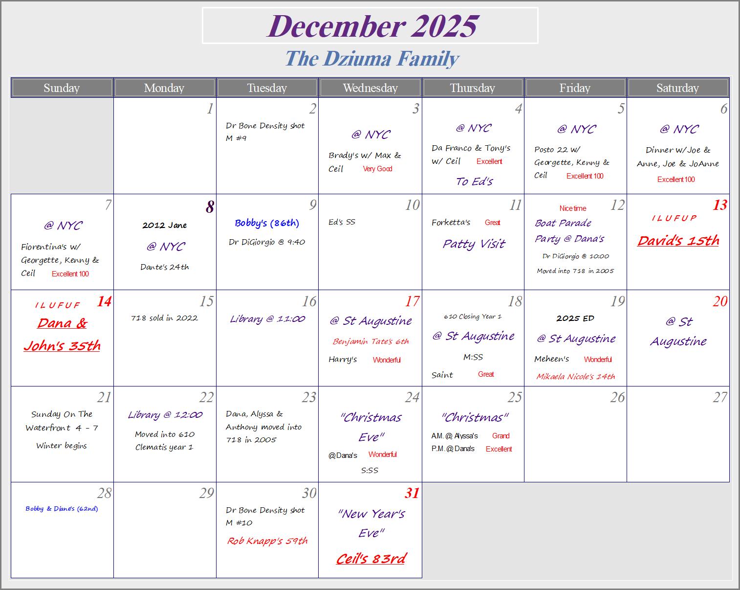 Hopefully, I have all the birthday and anniversary dates correct...