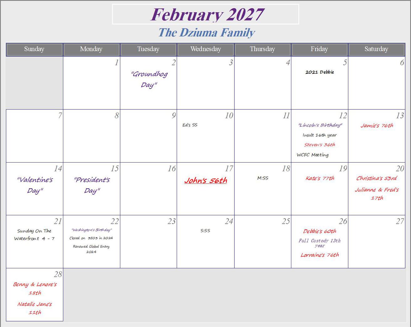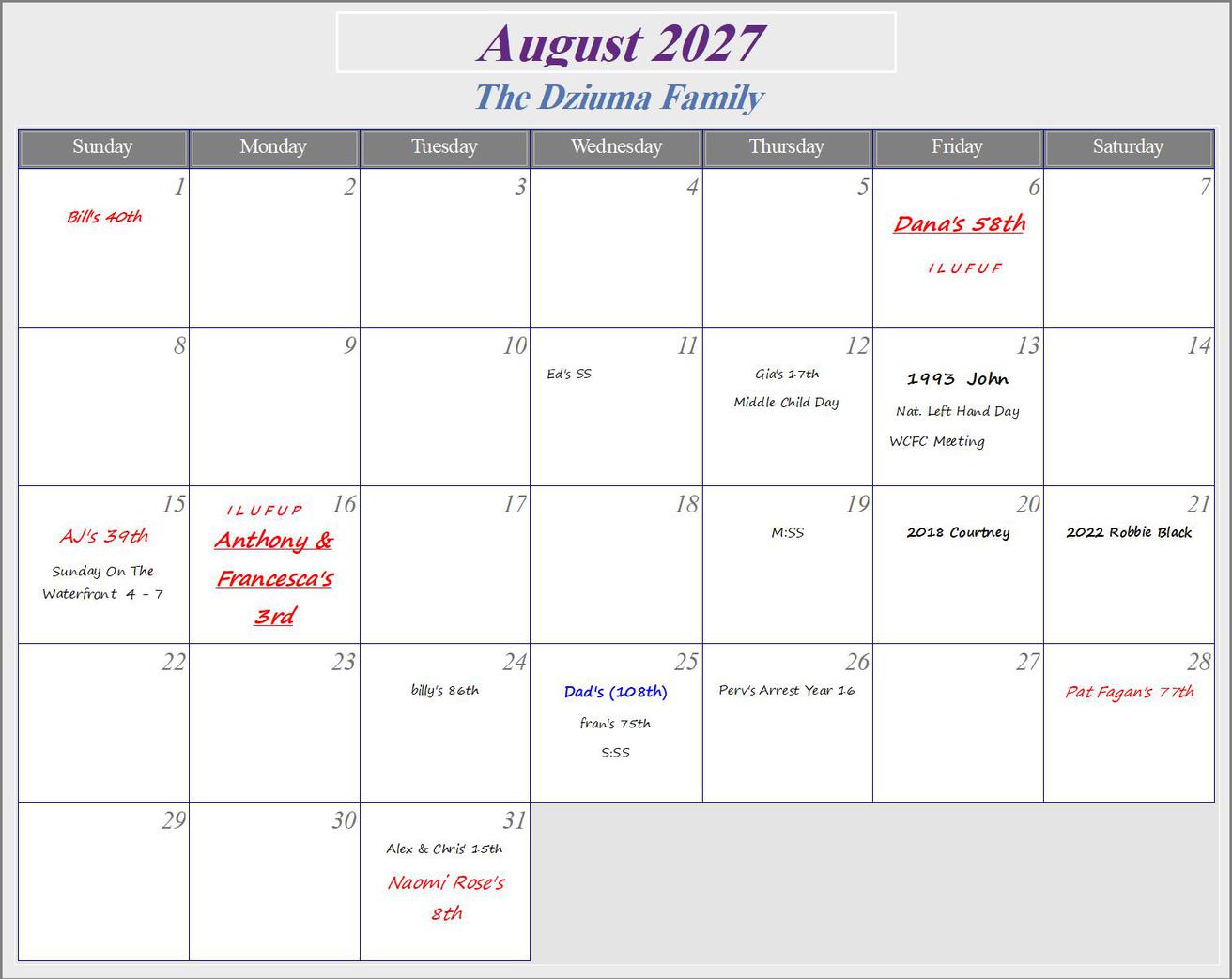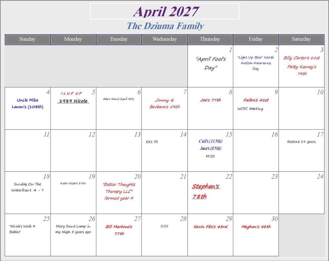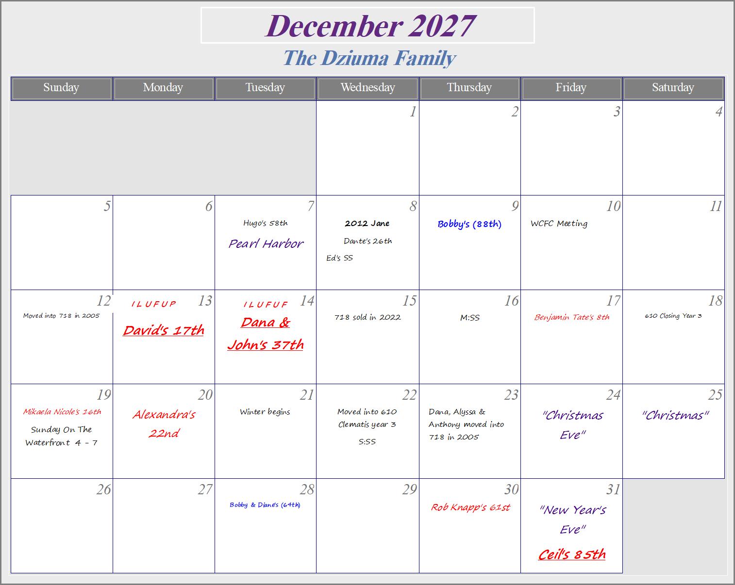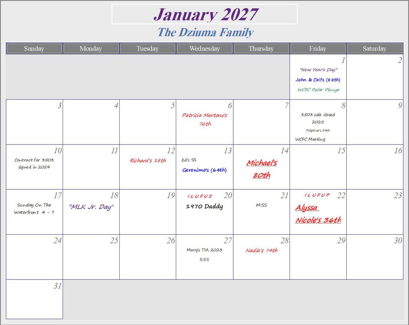 Keep current with all our birthdays, anniversaries, holidays or the important events in our lives in this year or