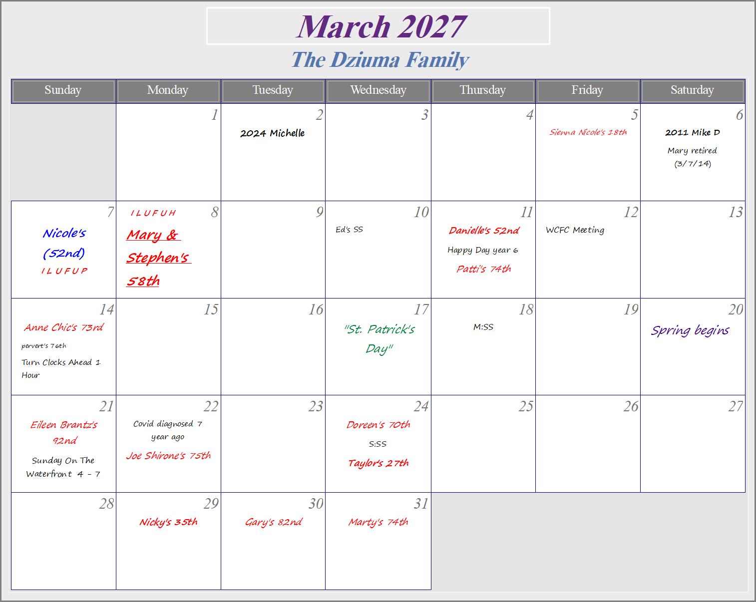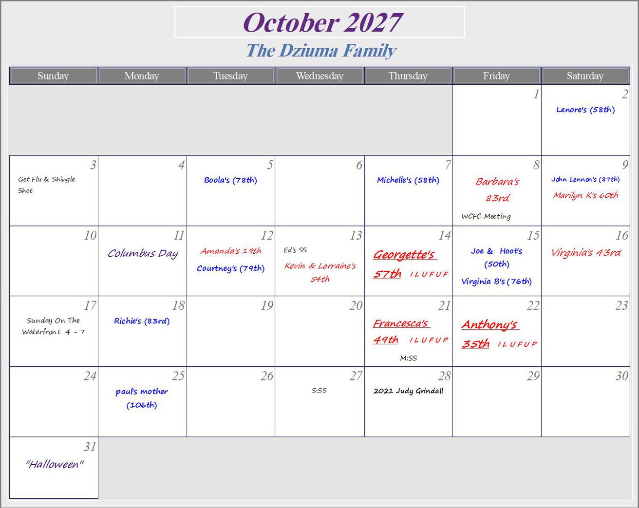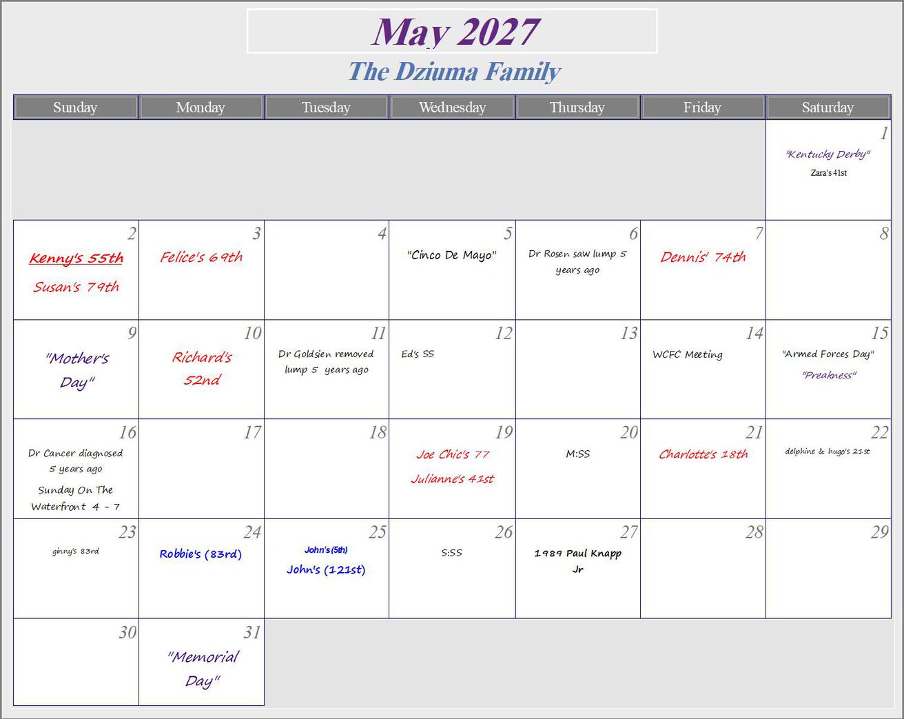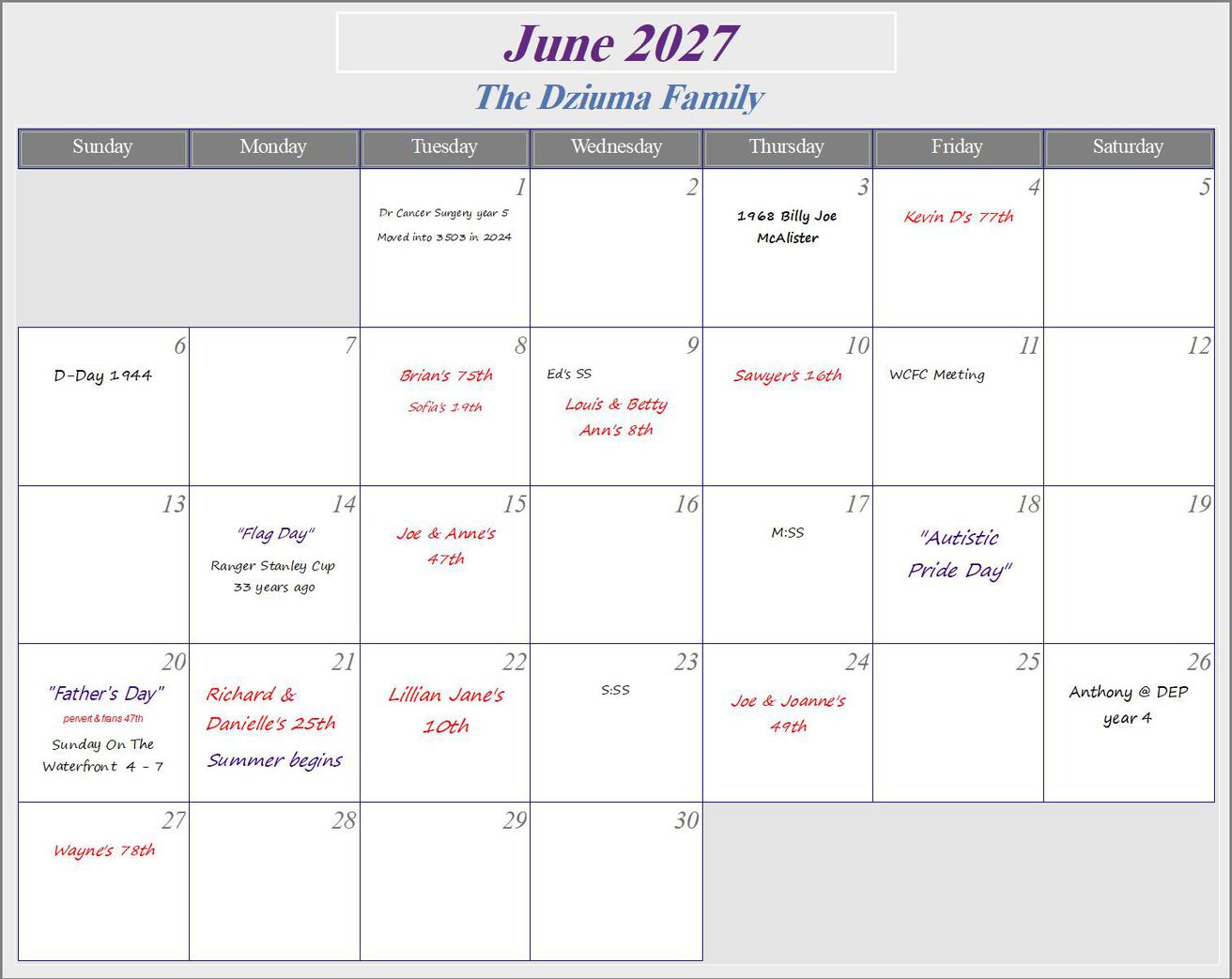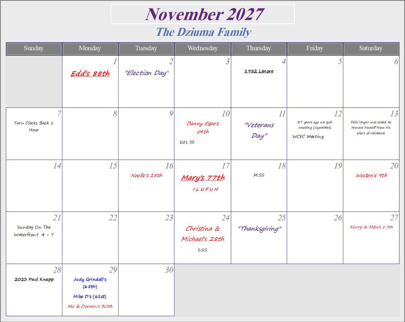 Keep current with all our birthdays, anniversaries, holidays or the important events in our lives in this year or